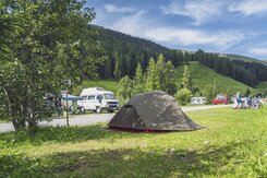 Neben der Gruppenunterkunft befindet sich auf der Anlage auch ein Campingplatz. Die Stellplätze liegen direkt am Fluss Landwasser inmitten der Bündner Bergwelt und ist sowohl im Sommer als auch im Winter bei aktiven Gästen beliebt. Naturliebhaber können sich auf einen Urlaub mit viel Flexibilität freuen, entweder im Zelt oder im eigenen Wohnwagen.