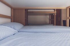 In the main building of the Little Palace, there are double-, four- and six-bed rooms with bathroom inklusive shower in the room. In the somewhat simpler double and multi-bed rooms in the adjoining building, the showers and toilets are on the same floor. Bed linen is provided for overnight stays in the bunk beds; guests should bring their own towels.