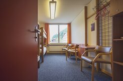 The simple accommodation offers space for up to 52 guests in 15 rooms. The cosy double and four bed rooms have bunk beds, sufficient storage space, bed linen and towels. Showers and toilets are located on the same floor.
