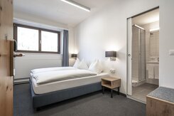 Doppelzimmer mit Bettsofa und Badezimmer. Ideal für Familien. Die Bettengrösse beträgt zwei Betten mit den Massen 90x200cm.
