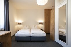 Doppelzimmer Deluxe mit Badezimmer. Die Bettengrösse beträgt zwei Betten mit den Massen 90x200cm.