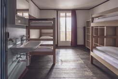 Die 23 Zimmer bieten Platz für bis zu 71 Gäste. Ausgestattet sind die Zwei-, Vier- und Fünfbettzimmer mit Stockbetten inklusive Bettwäsche und mit einem Waschbecken. Zudem verfügen einige Zimmer über einen Balkon mit Blick auf das Landwasser. Die Duschen und Toiletten befinden sich auf der Etage. Duschtücher werden von den Gästen selbst mitgebracht.
