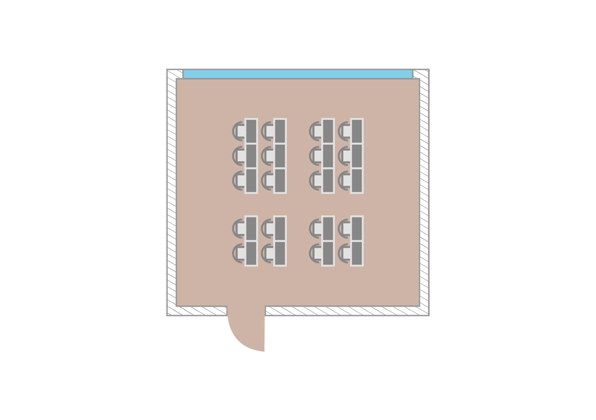 Equipmentflip chart | pinboard | pens | writer's block | natural Daylight | room darkening possible | accessible